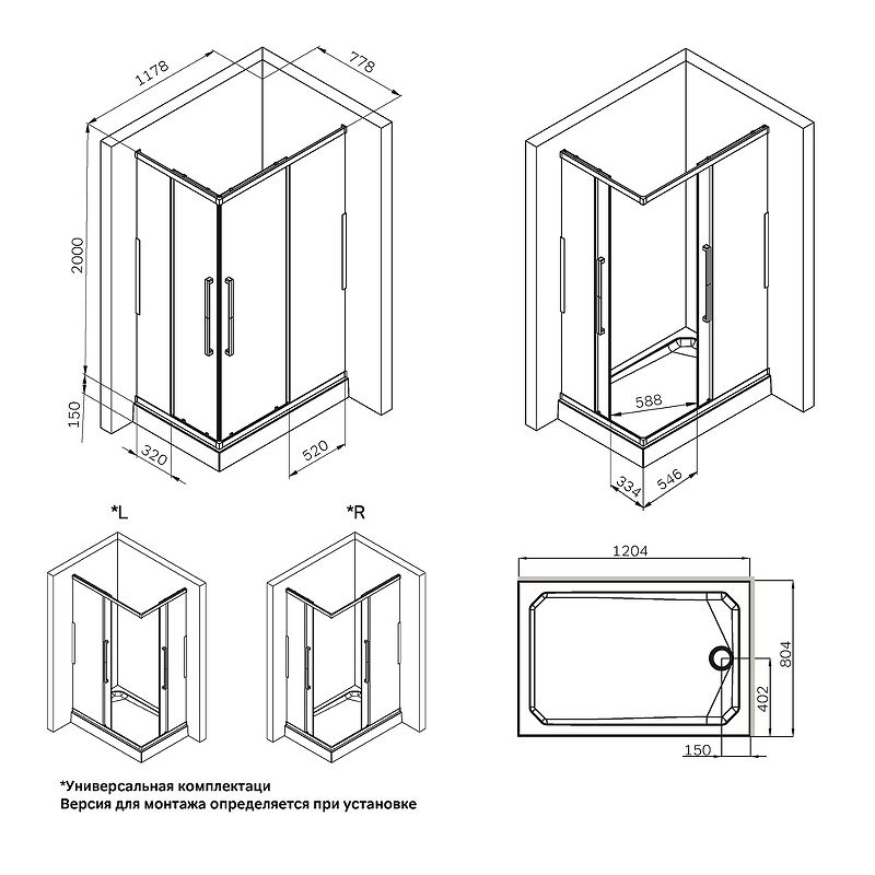 • Стандартные размеры, см:
