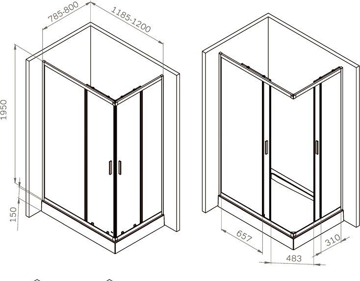 Душевой уголок AM.PM Gem W90G-403-120280-BT профиль черный 120х80 см Размеры: