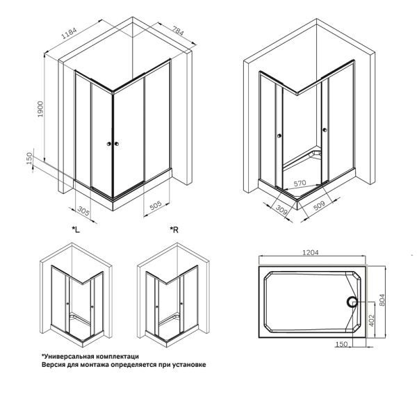 Душевой уголок Am.Pm X-Joy W94G-403-12080-MT 120x80 см профиль хром матовый стекло прозрачное купить