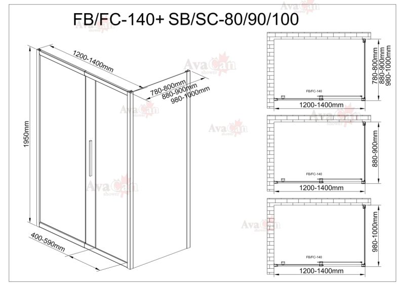 Душевой уголок AvaCan FB 120-140 + SB 90 чёрный