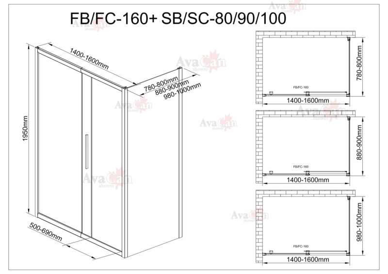 Душевой уголок AvaCan FС 140-160 + SС 100 MT хром