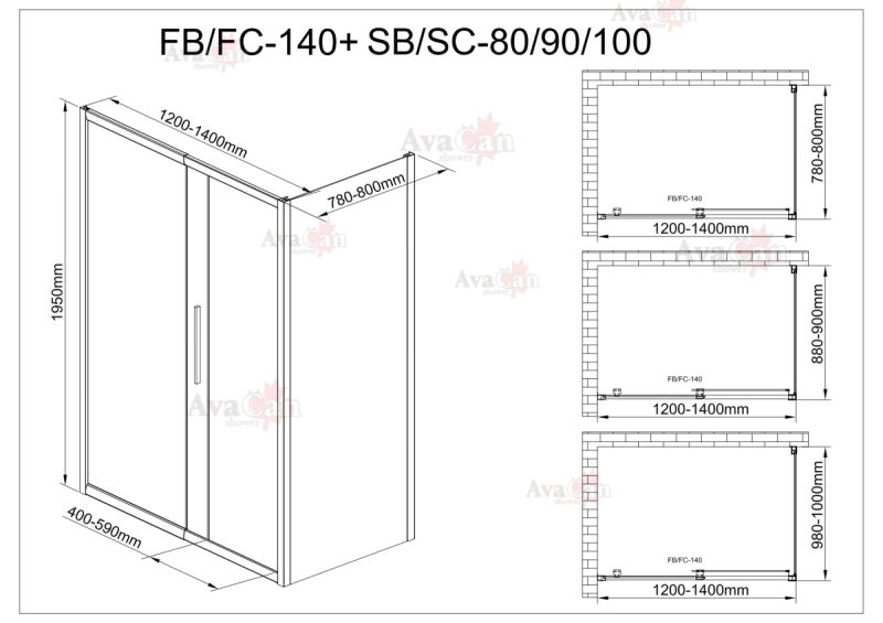 Душевой уголок AvaCan FС120-140 + SС 80 MT хром