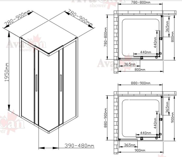 Душевой уголок AvaCan KС 80-90 MT хром купить