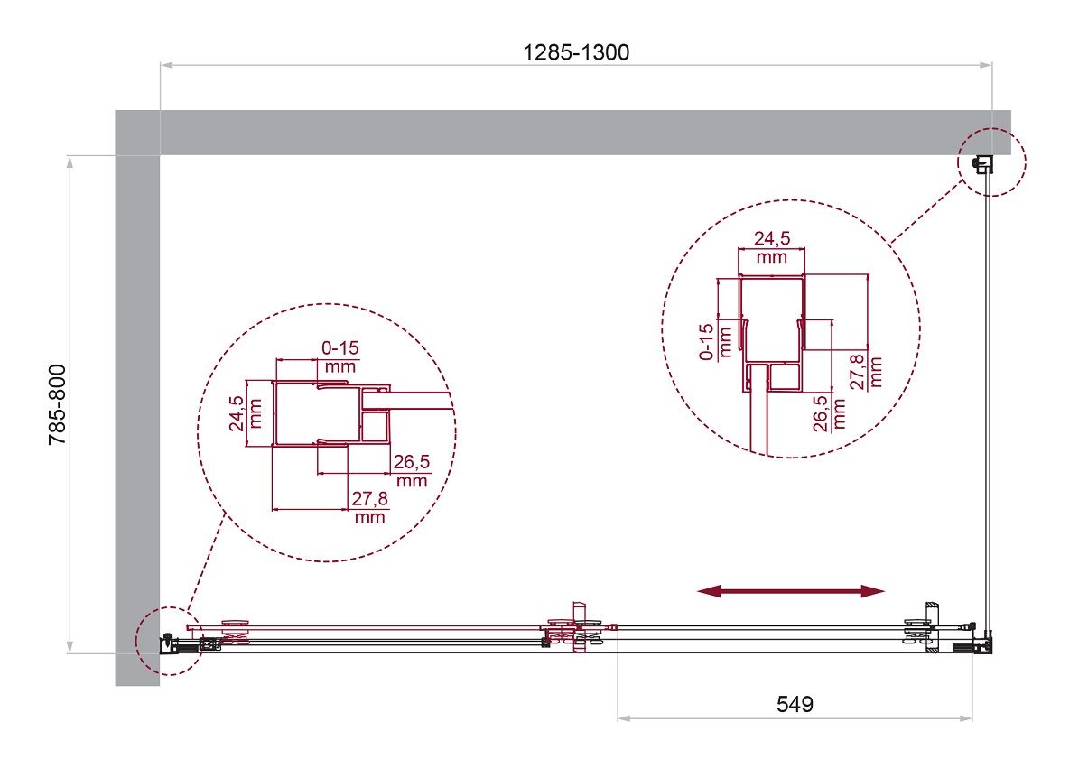 Душевой уголок BelBagno LUCE-AH-1-130/80-C-Cr хром