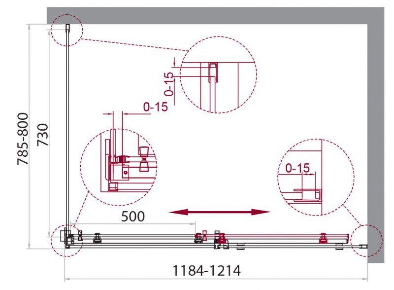 Регулировка ширины: предусмотрена за счет боковых профилей