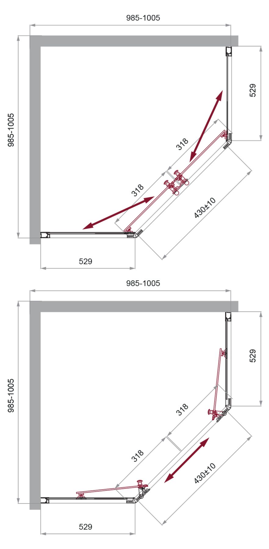 Регулировка ширины: предусмотрена за счет боковых профилей