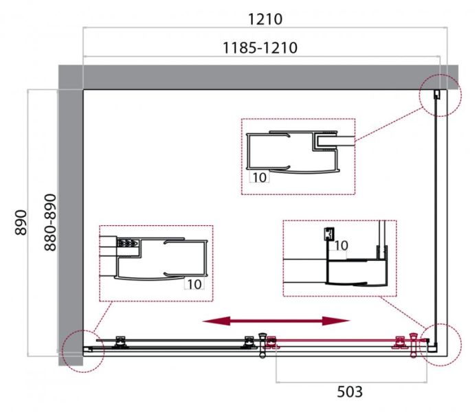 Регулировка ширины: предусмотрена за счет боковых профилей