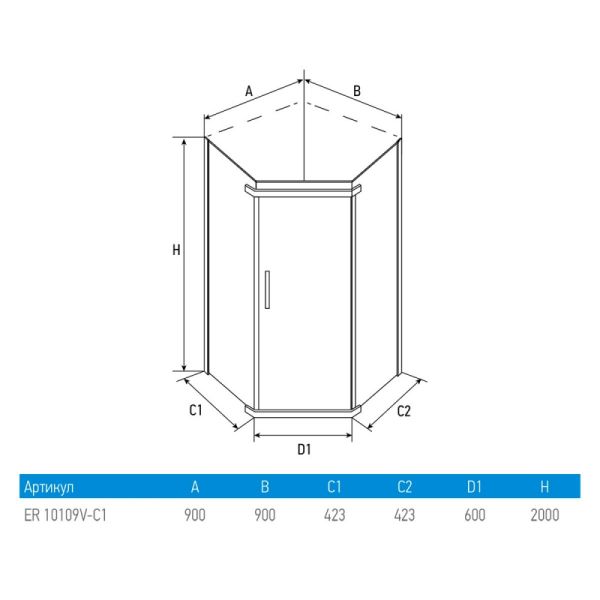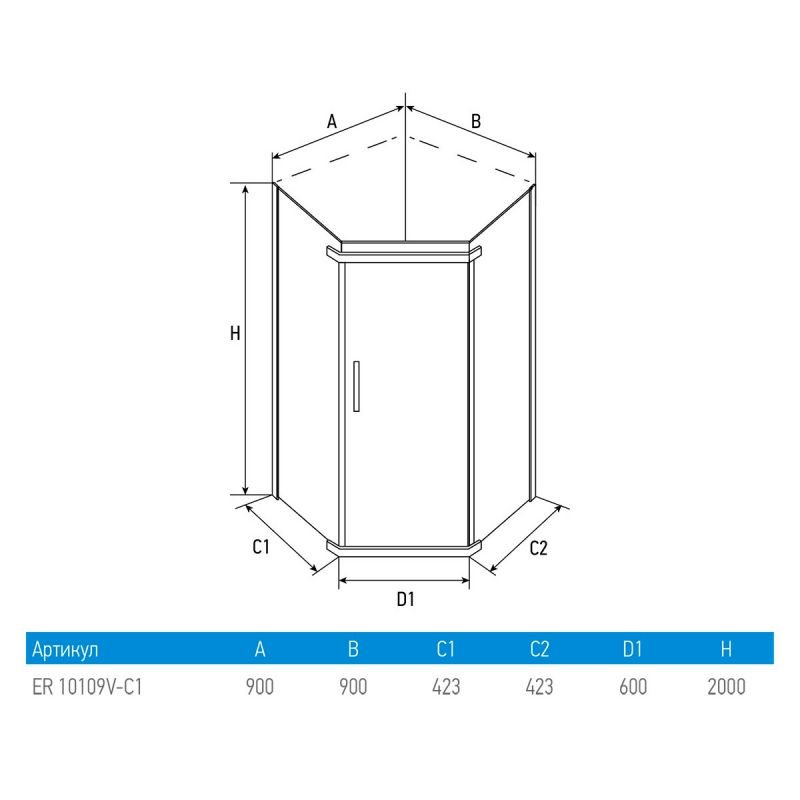 Душевой уголок Erlit Comfort ER10109V-C4 (900x900x2000) пятиугольное, тонированное