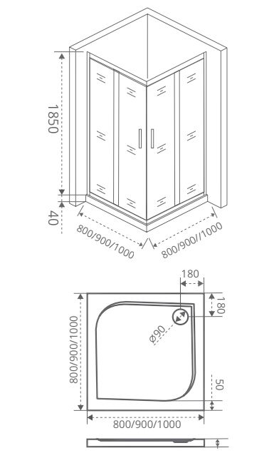 - Ширина х глубина: 1000 х 1000 мм,
