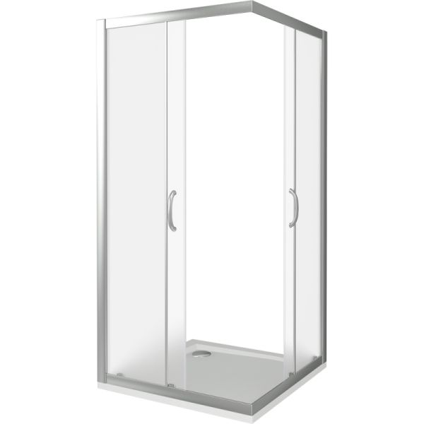 Душевые ограждения серии Infinity: выполнены из 6-ти миллиметрового закаленного, безопасного стекла с подвижными дверками; система двойного профиля позволяет делать регулировку ограждения, при неровных стенах +/- 2 см; универсальность право- и левосторонней установки; обрамление выполнено из анодированного алюминиевого профиля с высококачественным покрытием; использование расширительных профилей до 4 см в зависимости от моделей; двойные регулируемые ролики из нержавеющей стали обеспечивают тихое и плавное открывание дверей; нижние ролики с механизмом отстёгивания обеспечивают легкий доступ к стеклу и профилям для очистки; металлические элементы конструкции изготовлены из антикоррозионного сплава; стыковые элементы стеклянного ограждения снабжены влагостойкими силиконовыми уплотнителями; магнитное закрывание обеспечивает герметичное прилегание дверей; имеют уникальную быструю систему установки; идеальное соединение алюминиевых профилей; имеют доступные запасные запчасти для сборки.Душевой уголок Good Door CR-90-G-CH ИН00059 прекрасно впишется в интерьер современной душевой или ванной комнаты. Имеет две раздвижные двери на двойных регулируемых роликовых салазках. Корпус роликов изготовлен из анодированного алюминия, что предает им надежность и долговечность их использования.Полотно двери изготовлено из закаленного и безопасного стекла с матовым покрытием, толщиной 6 мм. Фактура шероховатая.Профиль изготовлен из анодированного алюминия, который хорошо может противостоять ржавчине и отложению водного камня.Силиконовые уплотнители обеспечивают надежную защиту от протечек воды местах стыка стеклянных дверей.Дверь герметично закрывается с помощью двух алюминиевых ручек. Силиконовый уплотнитель также надежно герметизирует проем дверей. Способ открывания дверей - раздвижной.Монтаж осуществляется на пол, вплотную к стене. Форма уголка: квадратная.Профиль регулируемый по ширине: (890-910)x(890-910)x1850 мм.Ширина входа: 475 мм.Габариты (ДхШхВ):900x900x1850 мм.В комплекте поставки: