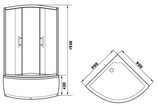 МОНТАЖ БЕЗ СИЛИКОНАУголок Z9011 душевой PARLY с поддоном (90х90х195)Размер: 90х90х193 см