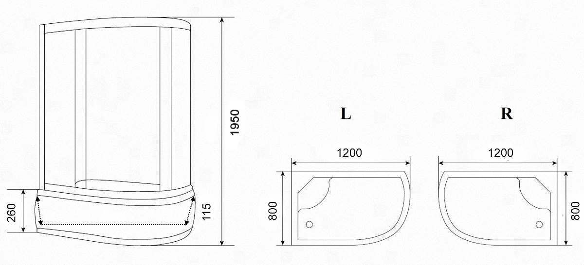 Уголок ZEM1201ВL душевой PARLY с поддоном (120х80х195)Размер: 120х80х195
