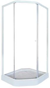 Душевой уголок Parly ZEР91FРазмер: 90х90х197 смУголок из матового стекла и белого алюминиевого профиля лаконично впишется практически в любое оформление ванной комнаты. Трапециевидная форма и раздвижные двери экономят полезную площадь в санузле Модель практична. На матовом стекле не видны разводы от воды, полотно легко чистить.Достоинства:• Закаленное безопасное стекло 4 мм.• Одинарные ролики обеспечивают плавный ход дверей.• Створки смыкаются плотно, не дают воде просочиться наружу.• Высота поддона – 10 см, рельефное дно.• Сифон в комплекте.