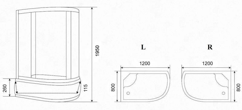 Уголок ZFM1201R душевой PARLY с поддоном (120х80х195)
