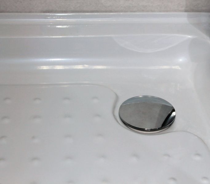 • Поддон низкий, белый из ABS-пластика, высотой 15 см, дно с рисунком,