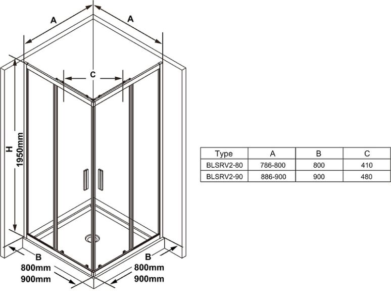 Регулировочные размеры: 786-800x786-800 мм.