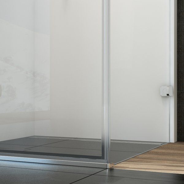 Скомбинируйте разные размеры душевых дверей с неподвижной стенкой и создайте квадратное или прямоугольное душевое пространство.