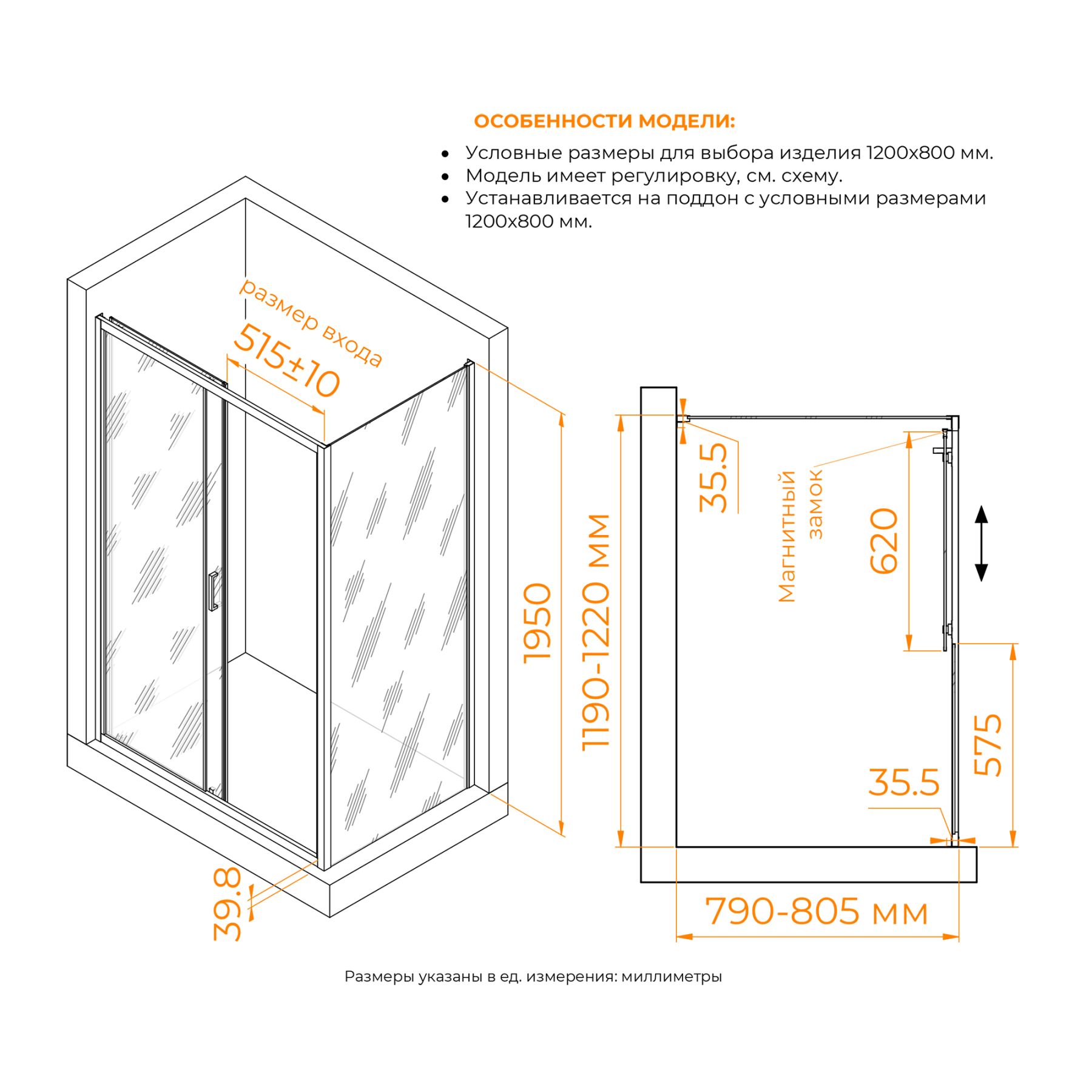 - Размеры с диапазоном регулировок: (1190-1220)x(890-905) мм