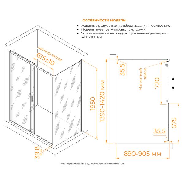 - Конструкция дверей: раздвижная