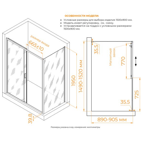• Конструкция дверей: раздвижная