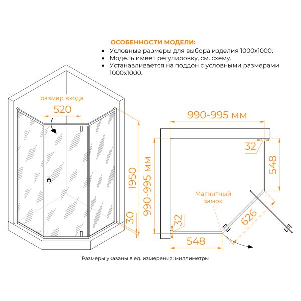 - Высота общая: 1950 мм