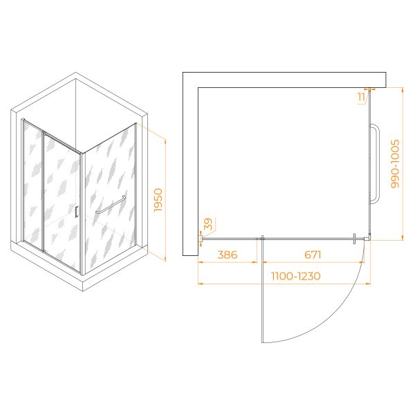 Душевой уголок RGW PA-078-1 (RGW PA-008 + Z-060-2) 3508078110-11 110x100см хром