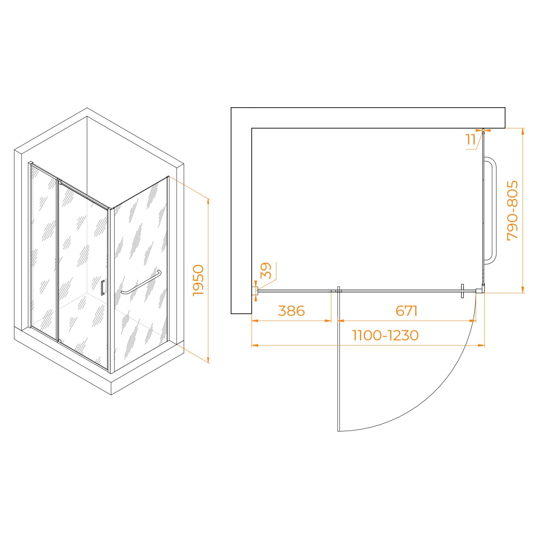 Душевой уголок RGW PA-078-1 (RGW PA-008 + Z-060-2) 3508078118-11 110x80см хром
