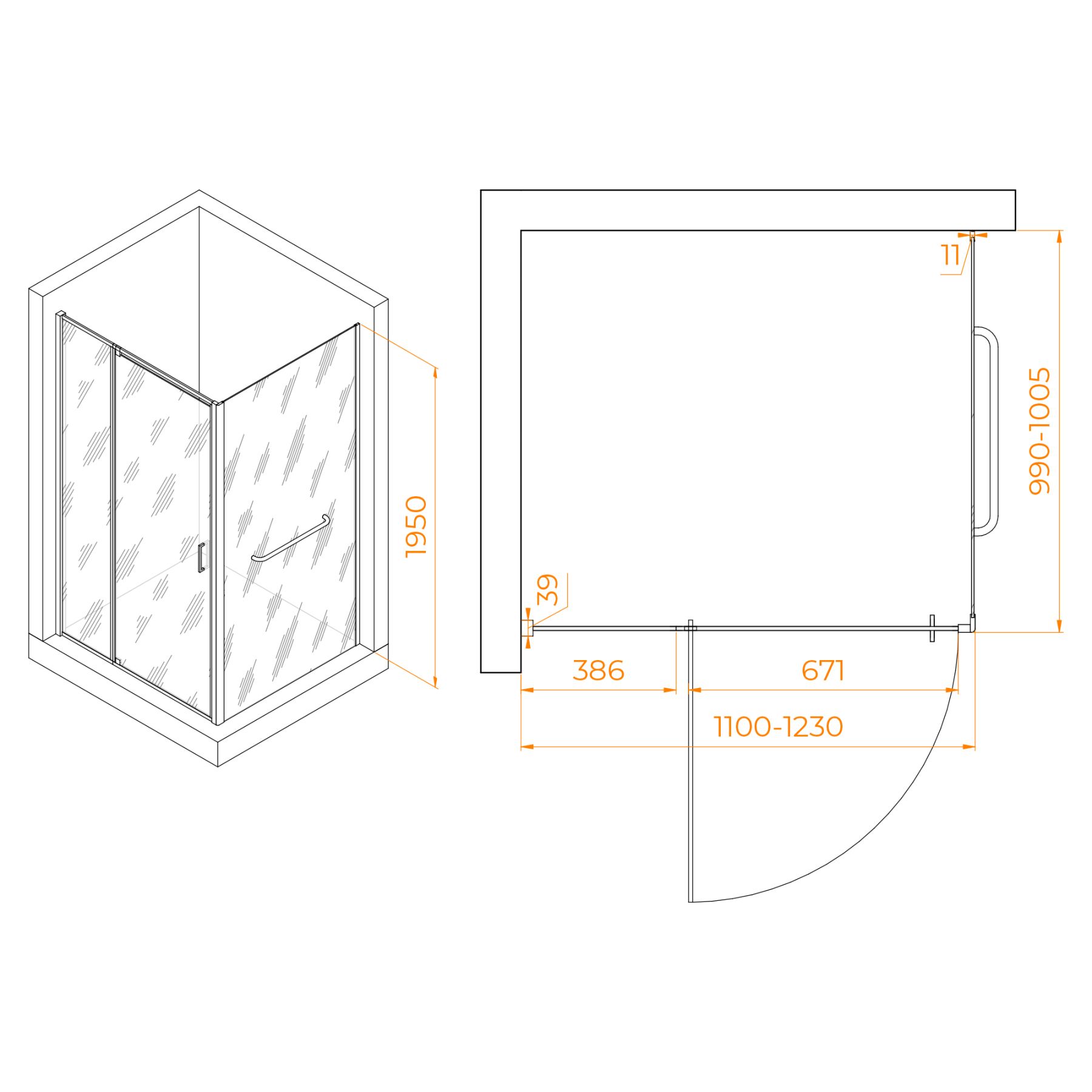 Душевой уголок RGW PA-078-1B (RGW PA-008B + Z-060-2B) 3508078110-14 110x100см чёрный