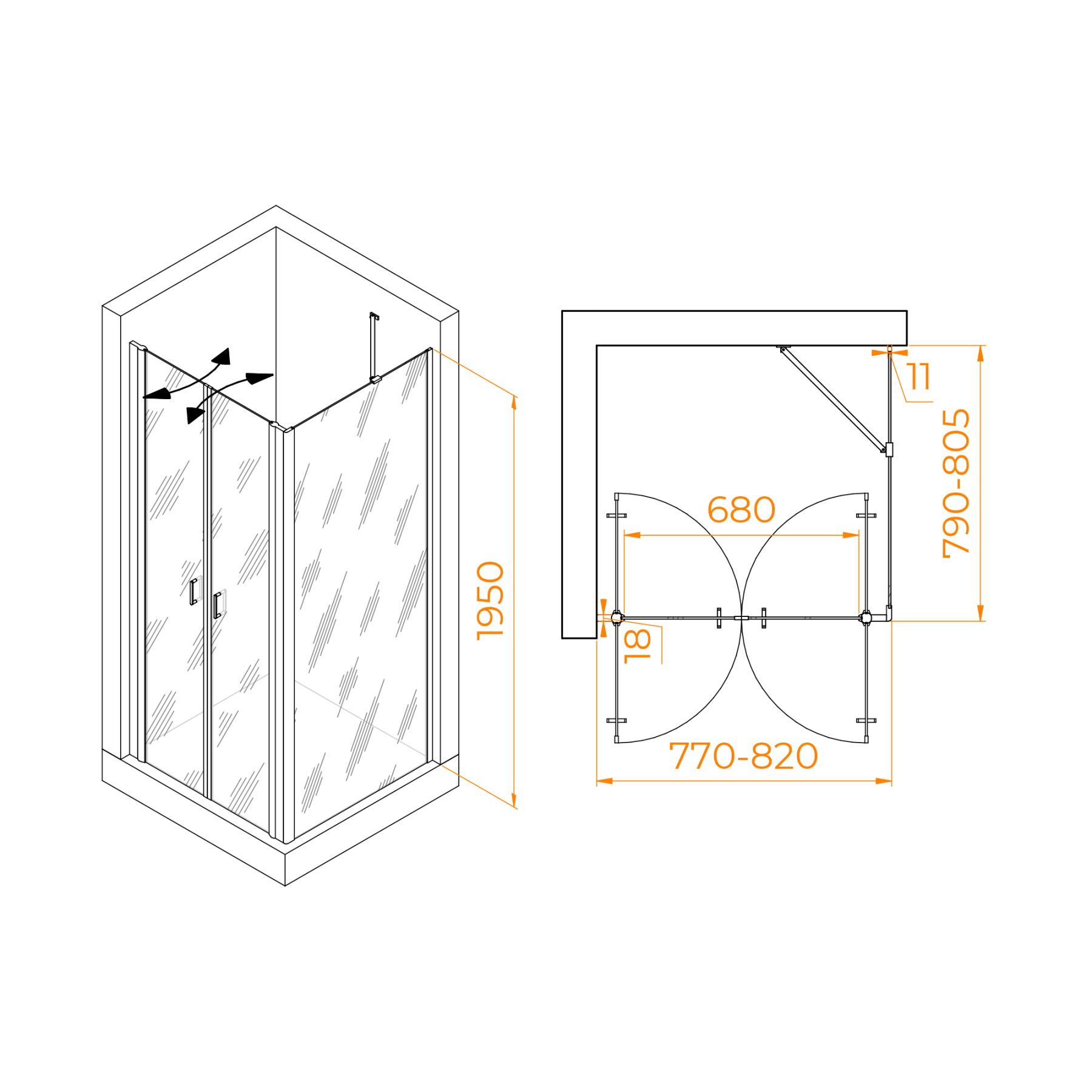 Душевой угол PA-134B (PA-104B+Z-050-2B+O-204B) - это превосходный выбор для тех, кто ищет комфо... Подробнее