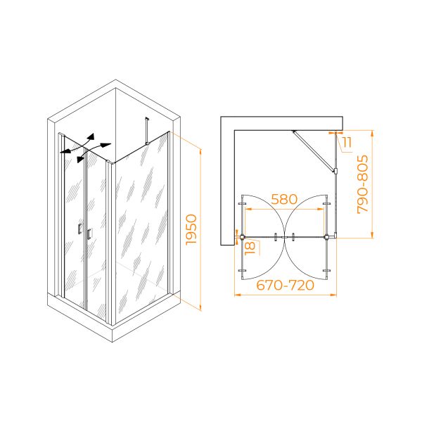 Душевой угол PA-144B (PA-104B+Z-050-2B+O-204B) - это превосходный выбор для тех, кто ищет комфо... Подробнее
