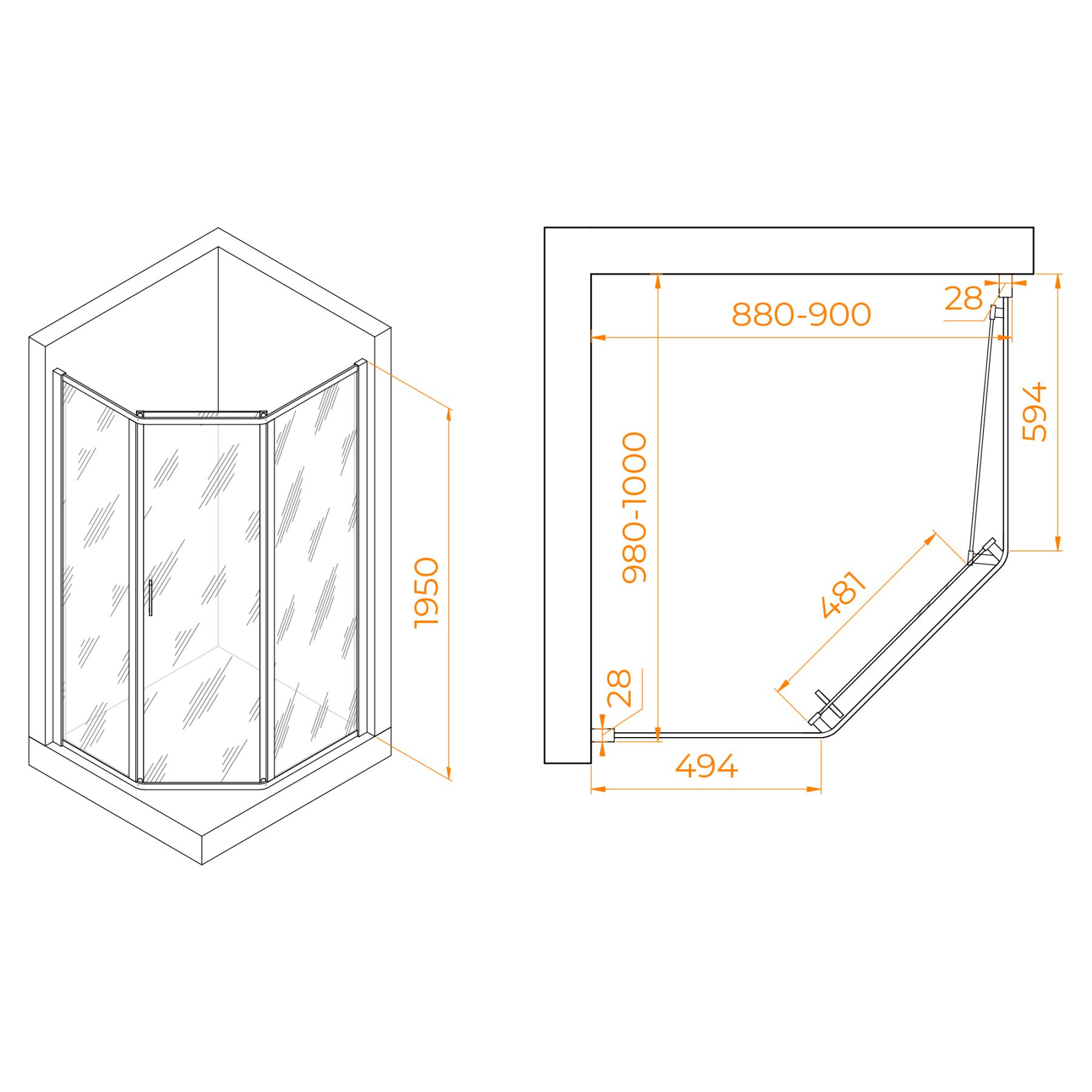 Душевой уголок RGW PA-86 38088690-11 90x100см хром