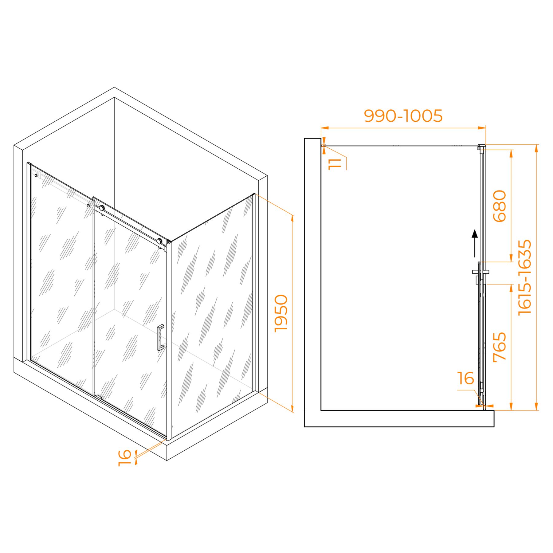 Душевой уголок RGW TO-44-1 (TO-14 + Z-060-2) 020744160-11 160x100см хром