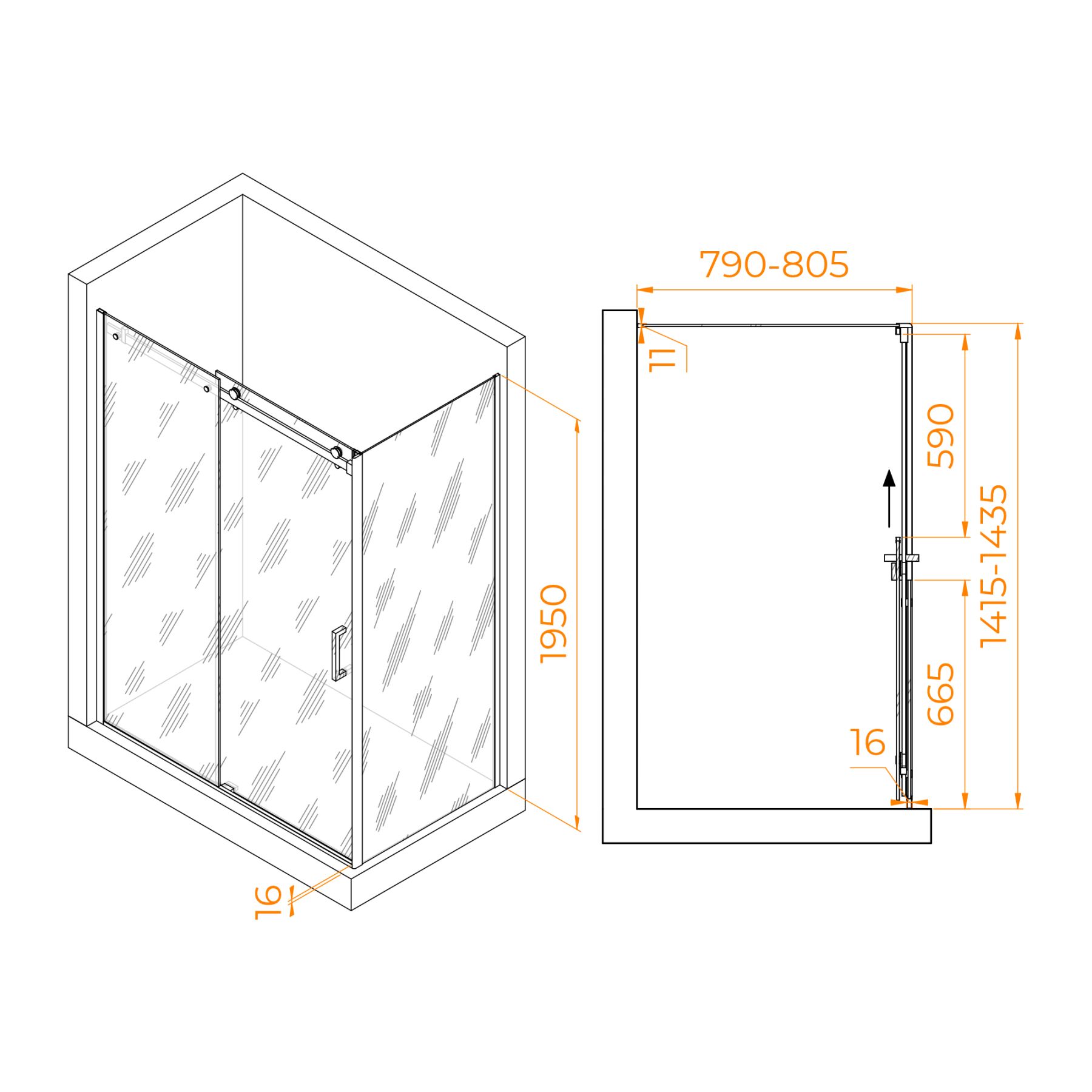 Душевой уголок RGW TO-44-1B (TO-14B + Z-060-2B) 020744148-14 140x80см чёрный