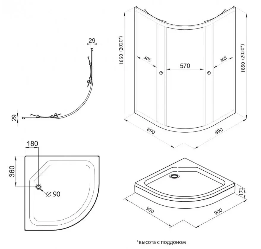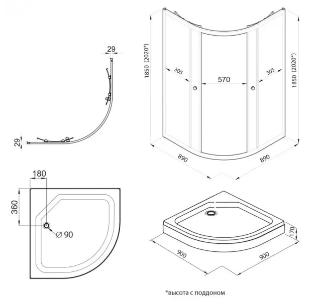 Душевой уголок Без поддона Размер: 90 x 90 x 185 см Конструкция дверей: раздвижная ... Подробнее