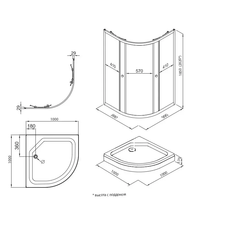 - Высота поддона 17 см