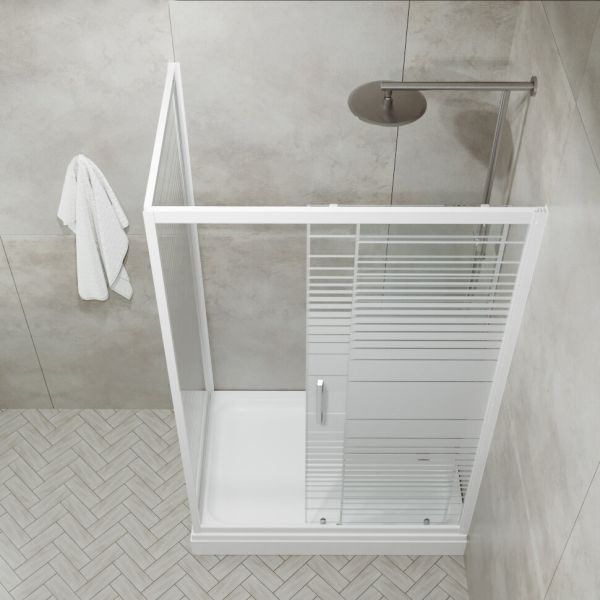 Душевой уголок Triton Фьюжн А 100x80 см с откатными дверцами и низким душевым поддоном. Алюминиевый профиль каркаса покрашен в белый цвет, стекло 4 мм прозрачное с рисунком. Высота душевого поддона 17 см.