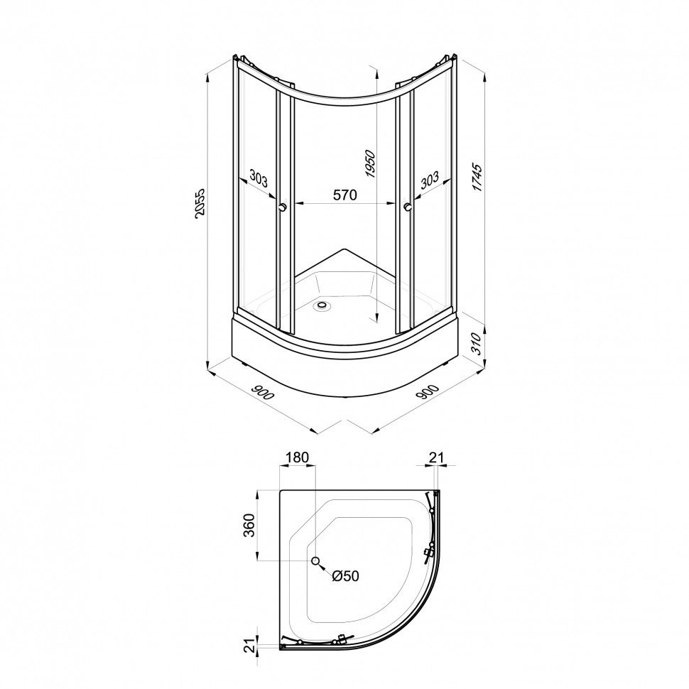 • Высота с поддоном: 205.5 см