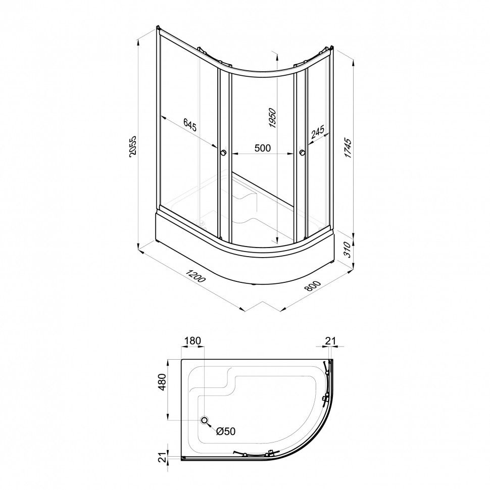 Душевой уголок Размер: 120 x 80 x 174.5 см Высота с поддоном: 205.5 см Конструкция д... Подробнее