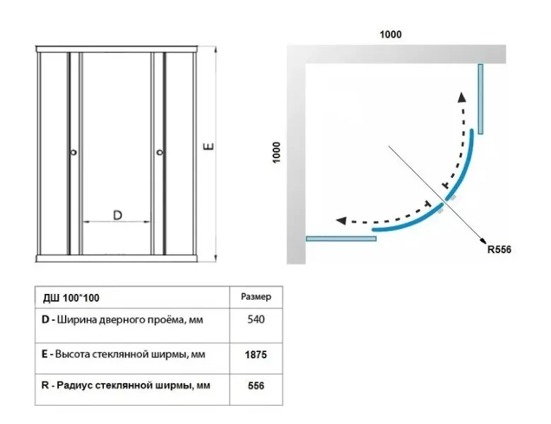 • Конструкция дверей: раздвижная