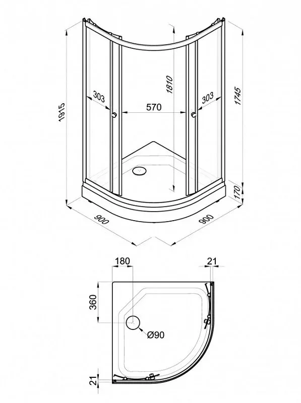 Душевой уголок Triton Стандарт-Полосы Щ0000061805 90x90 см профиль белый стекло с узором