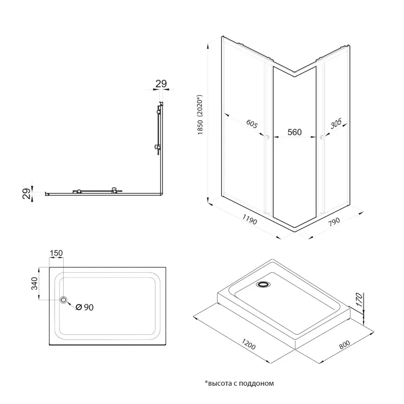 Поддон в комплекте
