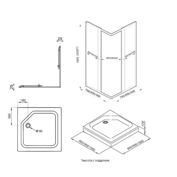 Длина: 100 см Ширина: 100 см Высота: 202 см Высота поддона: 17см Диаметр слива: 90мм Форма... Подробнее