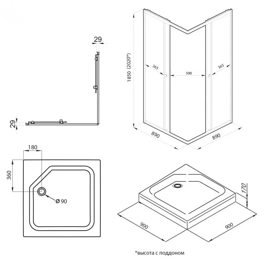 Высота с поддоном: 202 см