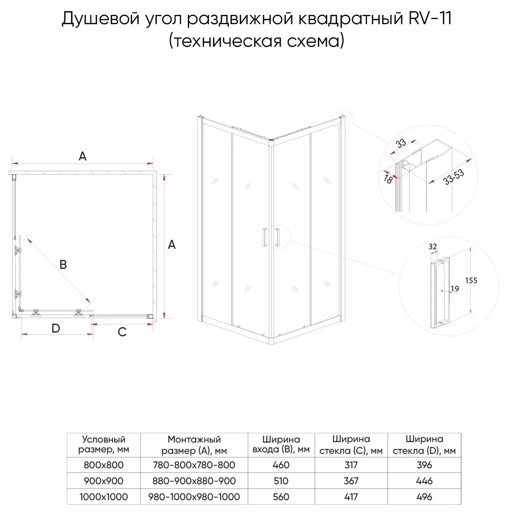 Душевой уголок Veconi Rovigo RV-11, 1000x1000x1950, хром, стекло прозрачное купить