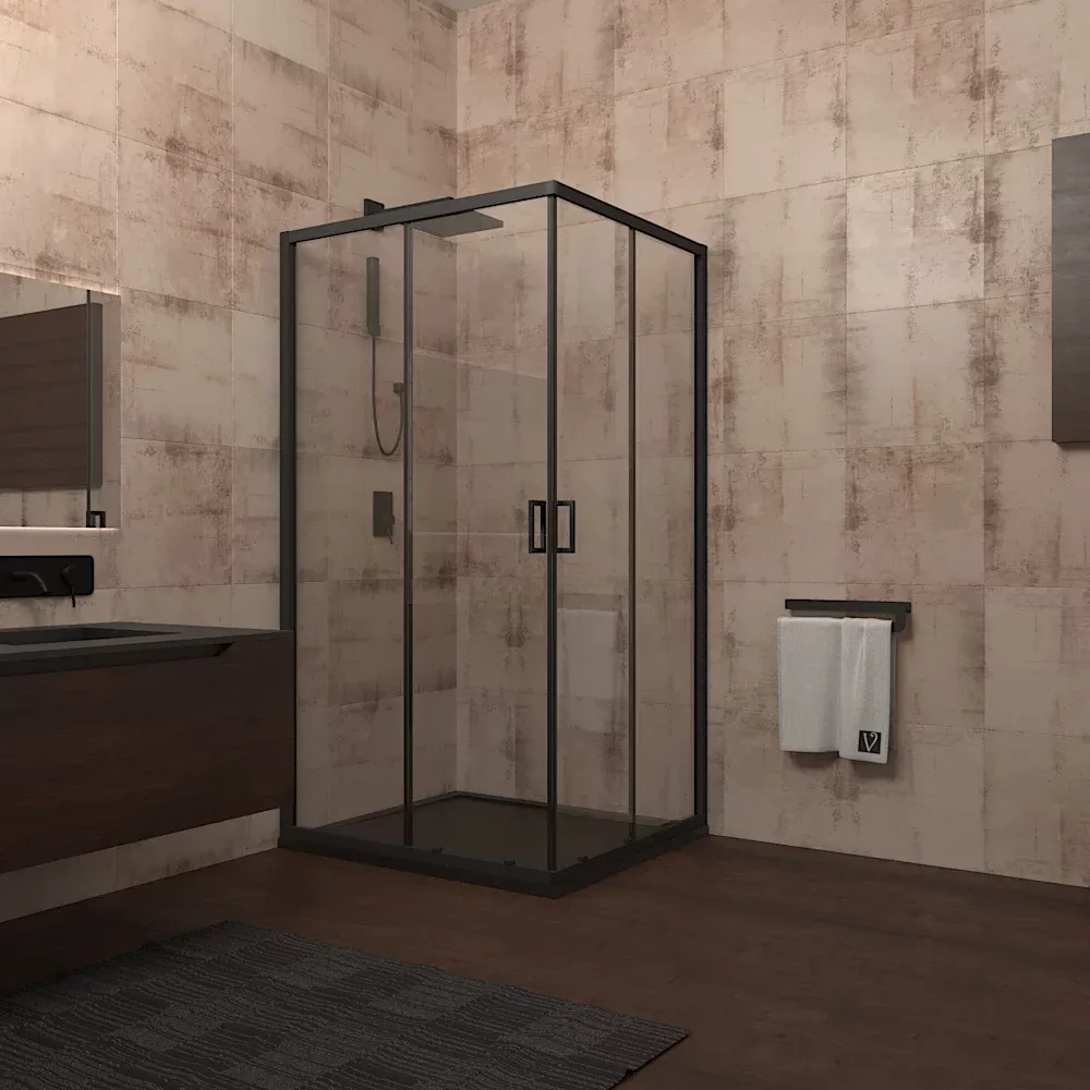 Душевой уголок Veconi Rovigo RV-13, 900x900x1950, черный, стекло прозрачное купить