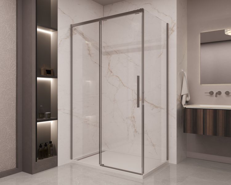 Душевой уголок Vincea Stella VSR-1ST1014CLGM, 1400*1000, вороненая сталь, стекло прозрачное купить