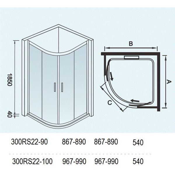 Душевой уголок WeltWasser СЕРИЯ WW300 Арт. 300RS22-100 Размер 1000х1000х1850