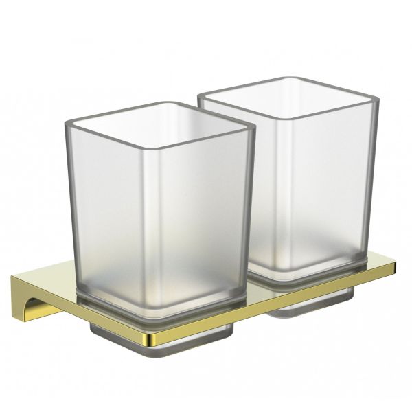 Два стакана для зубных щеток с держателем WONZON & WOGHAND ECLIPSE, Глянцевое золото (WW-9128-LG)