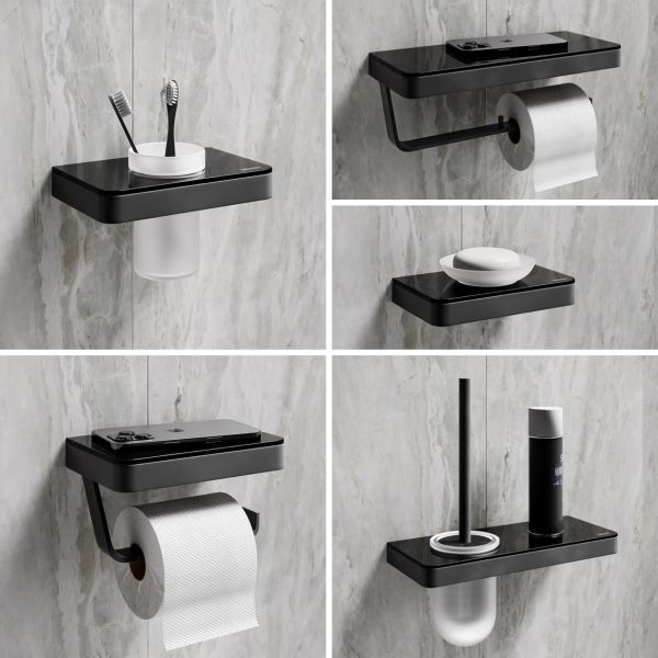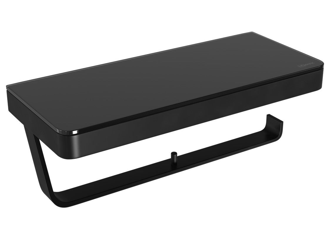 Двойной держатель для туалетной бумаги Lemark Glass Line 9722042 с полкой чёрный/чёрное стекло