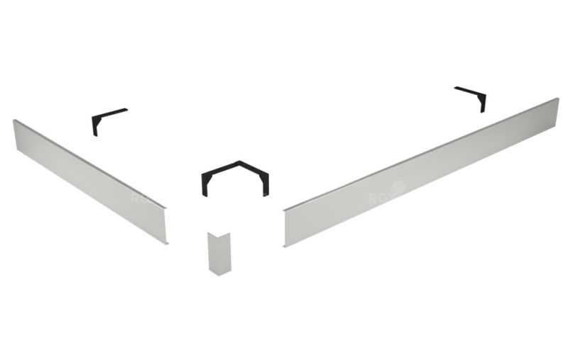 Комплектация: 2 экрана (фронтальный и боковой), соединительный уголок, крепление к ножкам на которые устанавливается поддон.